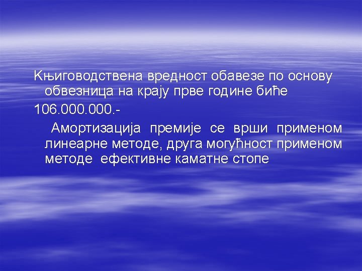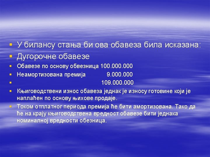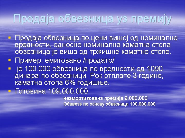 § Kada je kamatna stopa na koju glasi obveznica viša od tržišne kamatne stope, obveznica će se prodavati: § uz diskont § uz premiju § po nominalnoj vrijednosti § po knjigovodstvenoj vrijednosti