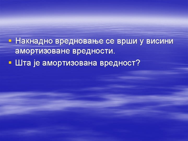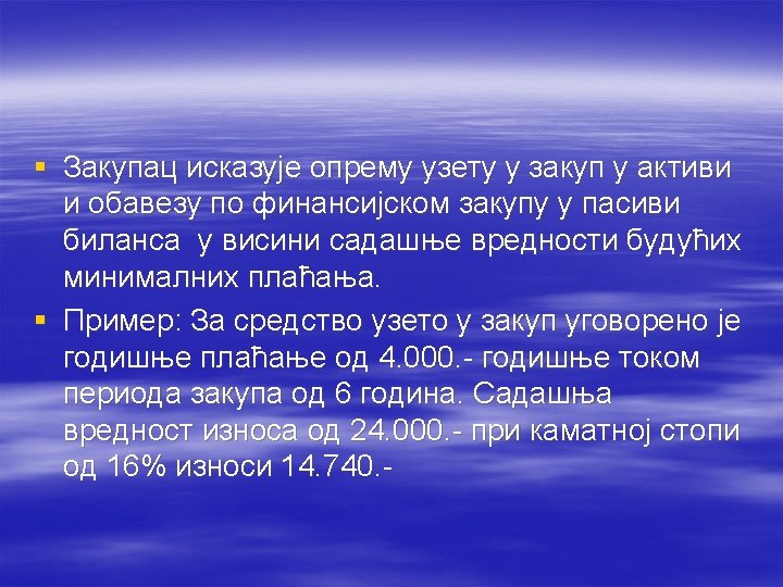 § Ciljevi formiranja rezervisanja: § Sa aspekta fer prezentacije neto imovine preduzeća rezervisanja se formiraju radi potpunog iskazivanja obaveza /polazeći od statičke teorije bilansa/. § Sa aspekta fer prezetacije prinosnog položaja rezervisanja se formiraju radi pravilnog periodiziranja rashoda i gubitaka /prema dinamičkoj teoriji bilansa/