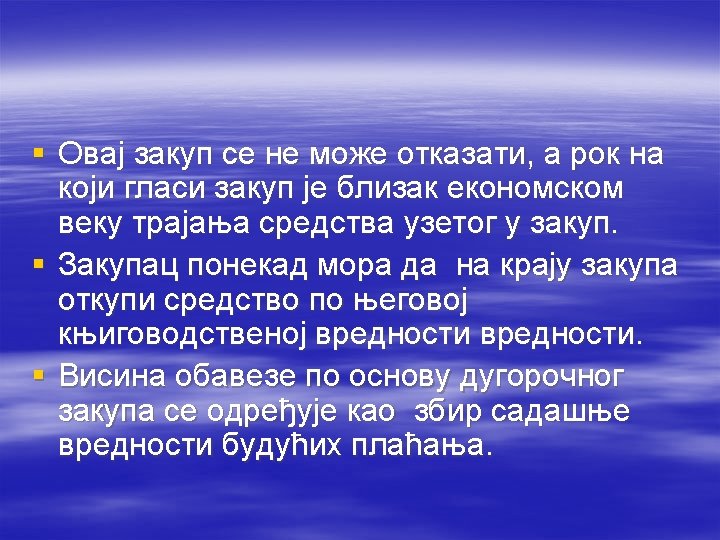 § Primer 2: § Preduzeće “Rekord” koje posluje profitabilno ima sklopljen petogodišnji ugovor o zakupu skladišnog prostora. § Nakon dve godine zbog kupovine novog skladišnog prostora magacin je premešten ugovor o otkupu koji traje još dve godine ne može se raskinuti niti se prostor može izadati drugom zakupcu?