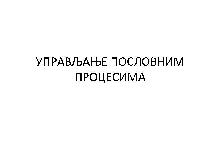 Koraci implementacije mehanizama merenja performansi procesa • Povećanje svesti o značaju upravljanja poslovnim procesima • Određivanje i uspostavljanje sistema za nagrađivanje • Svesnost o odgovornostima za procese • Definisanje mera (indikatora) procesa • Praćenje performansi • Upravljanje procesima • Kontinualna poboljšanja • Komunikacija