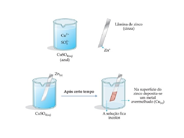 Células galvânicas microscópicas: zinco ferro Zn 2+ ee- Fe 2+ H+ H 2 H+ ee- H 2 O Fe(OH)2 OH- O 2 H 2 O Fe(OH)3 OH- O 2 Zn 2+ + 2 e- Fe 2+ + 2 e- 2 H + + 2 e - H 2 O 2 + 2 H 2 O + 4 e- 4 OH-