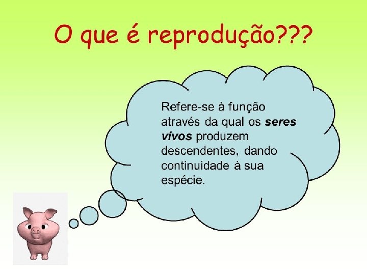Espermatozoide: carrega as informações do pai; Óvulo: carrega as informações da mãe; Quando essas células se juntam, Espermatozoide + óvulo = formam uma célula-ovo ou zigoto. O zigoto dará origem a um novo indivíduo por meio de inúmeras divisões celulares.