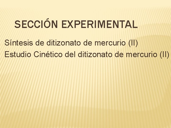 SECCIÓN EXPERIMENTAL Síntesis de ditizonato de mercurio (II) Estudio Cinético del ditizonato de mercurio (II)