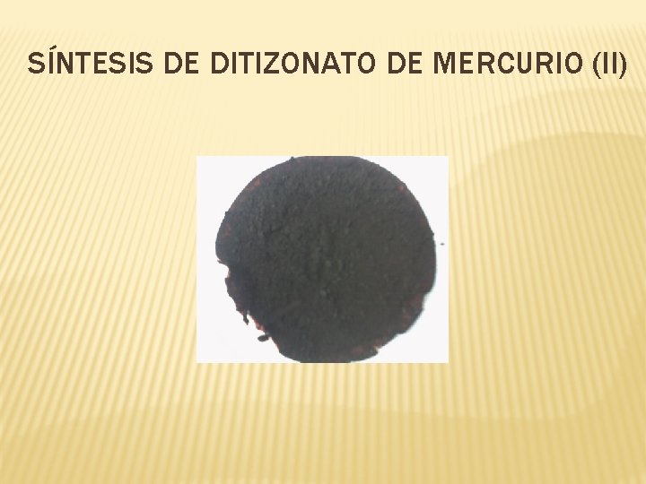 SÍNTESIS DEL DITIZONATO MERCURIO (II) 0, 8 g acetato mercurio (II) 1, 3 g ditizona Amoniaco 6 mol/L