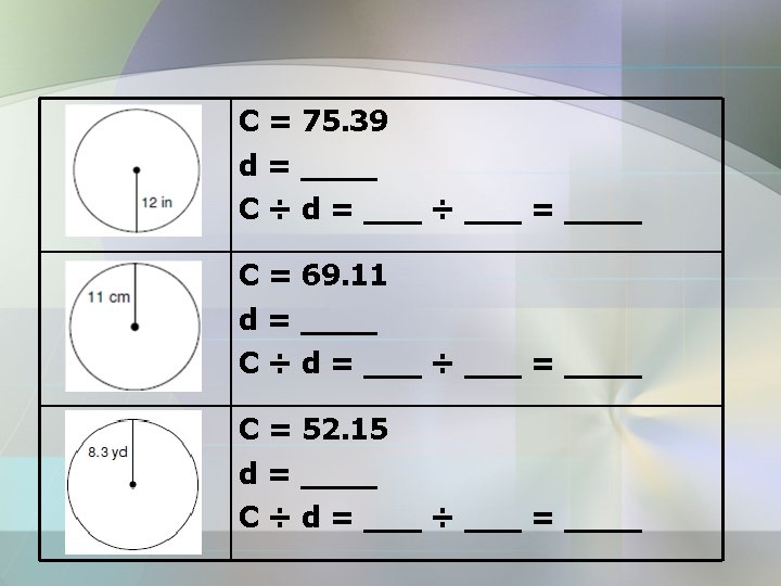 • When a circle's diameter is 1 unit, its circumference is pi units • In other words, the ratio of a circle’s circumference to its diameter is π