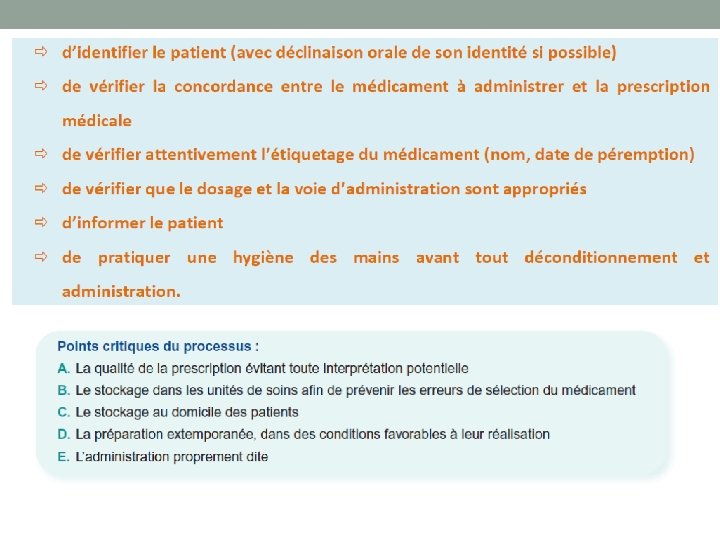 • Règle des 5 « B » • –Bon médicament • –Bonne dose • –Bonne voie • –Bon patient • –Bon moment il est souvent souhaitable d’y ajouter • –Bonnes conditions