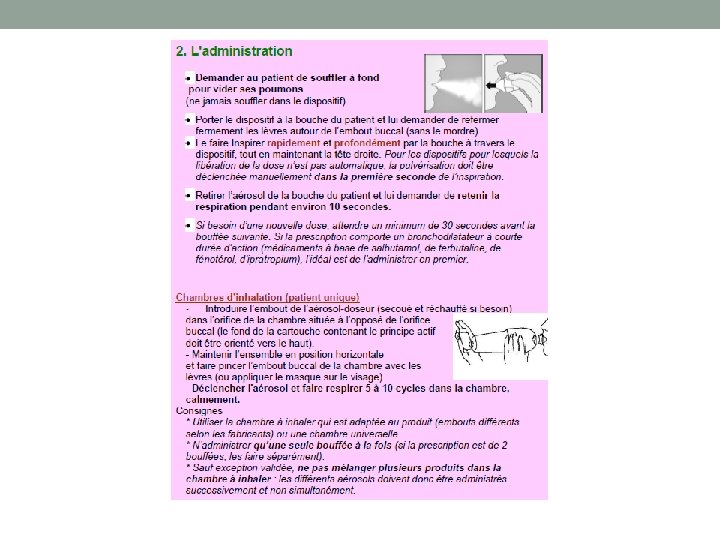 Contrôles essentiels avant administration • Le malade • – Nom du malade : VERIFIER L’IDENTITE du patient. « bonjour, comment vous appelez vous? » Et non pas: « vous êtes bien Mr … ? » ou se référer au bracelet d’identification • Interroger le patient sur d’éventuelles allergies (qu’il aurait omis de dire au médecin) • Apprécier l’autonomie du patient à gérer son traitement. (éducation thérapeutique)