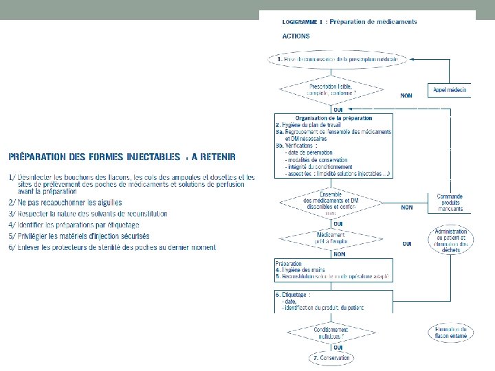 • Acte thérapeutique majeur • Infirmier(e) = rôle d’alerte • suit l ’état des malades, juge de l ’efficacité ou de la tolérance d ’un médicament • connaissances, le jugement clinique • « le bon médicament, au bon moment, au bon malade »