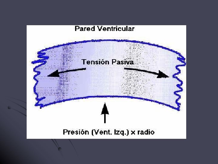 Factores que intervienen en el consumo de oxigeno l La pre-carga. tensión: t = (P x r) / 2 h l P: presión intraventicular l r: radio l H: altura Frecuencia Cardiaca l Fuerza de contracción l Post-carga. VO 2 del ventrículo izquierdo se incrementa. l