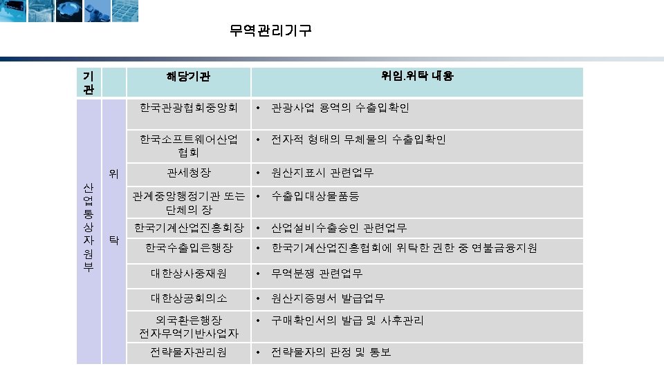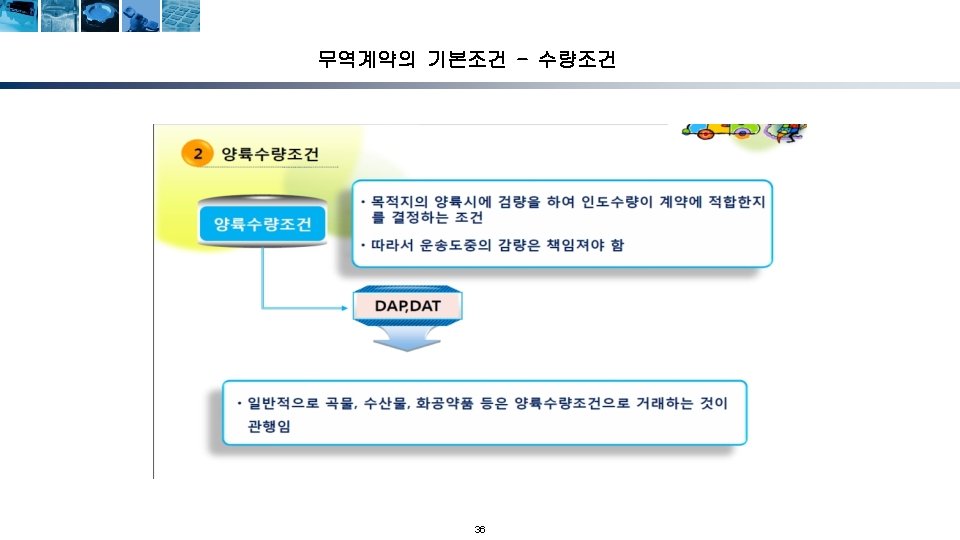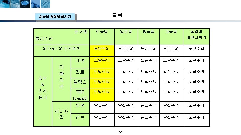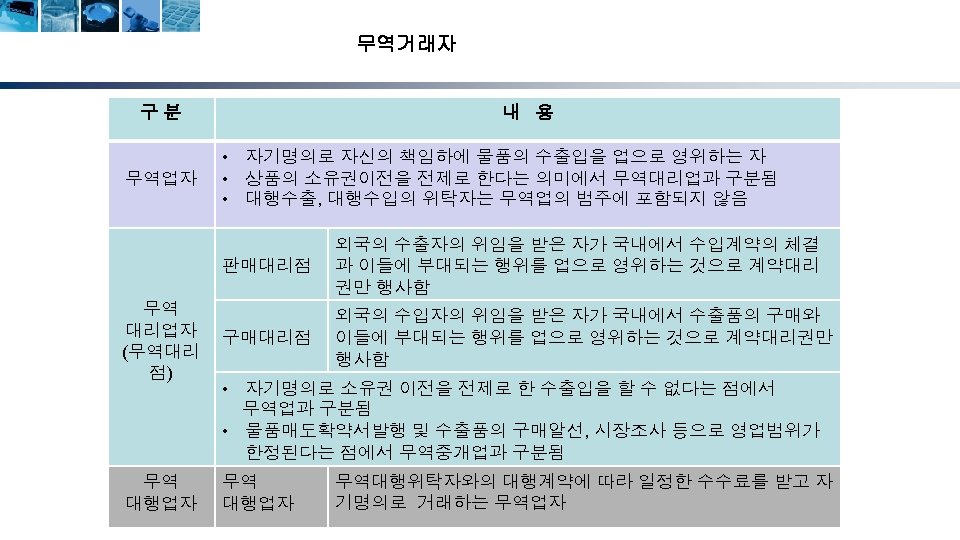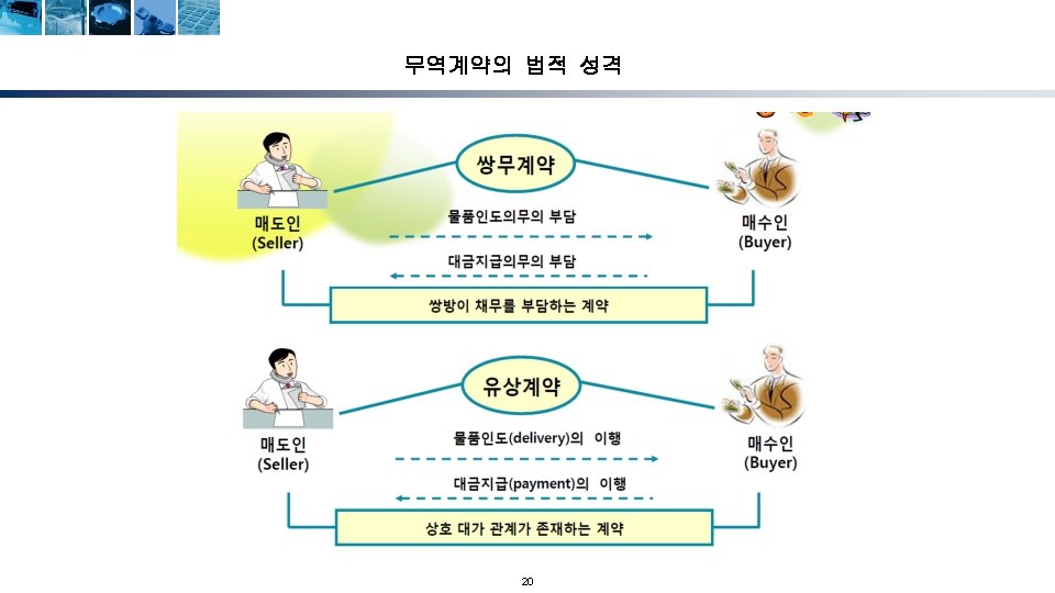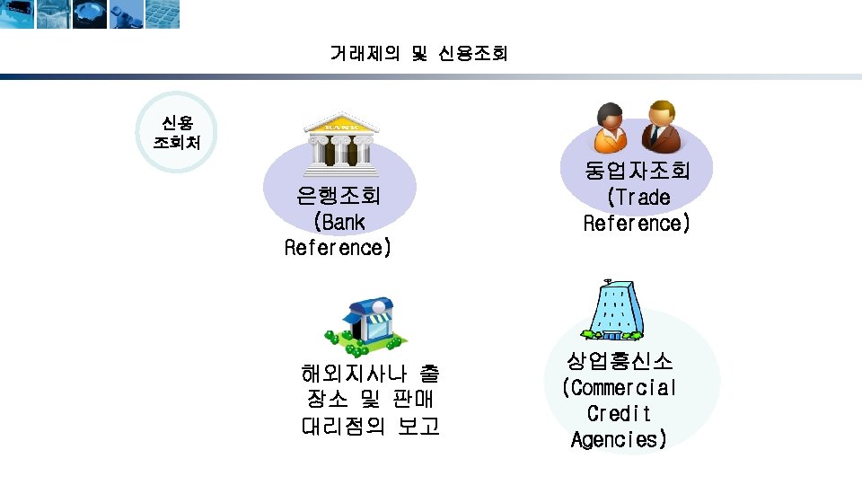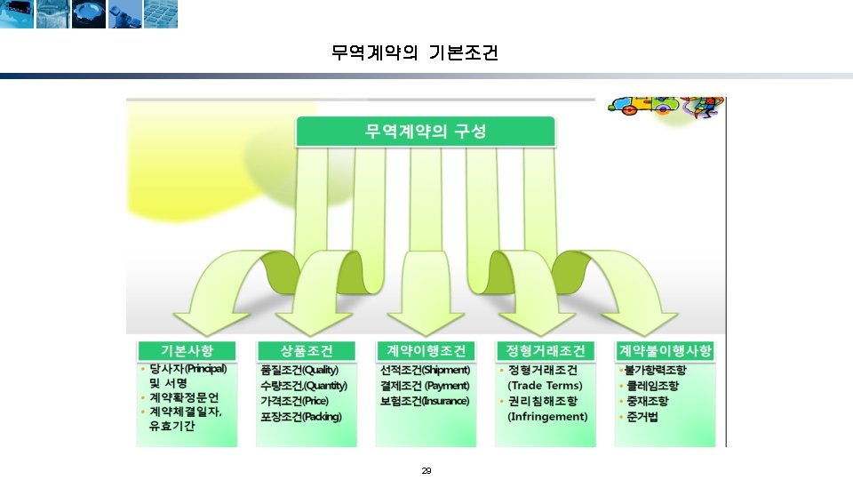 무역계약의 성립단계 청약자 (Offeror) 해외시장조사 및 거래선 발굴 거래권유(circular letter) 피청약자 (Offeree) 조회(trade inquiry) 조회회신 및 신용조회 Reply to inquiry and credit inquiry 청약(offer) 매도인 (Seller) 반대청약(counter offer) 승낙(acceptance) 계약성립(acceptance) Formation of contract) 17 매수인 (Buyer)