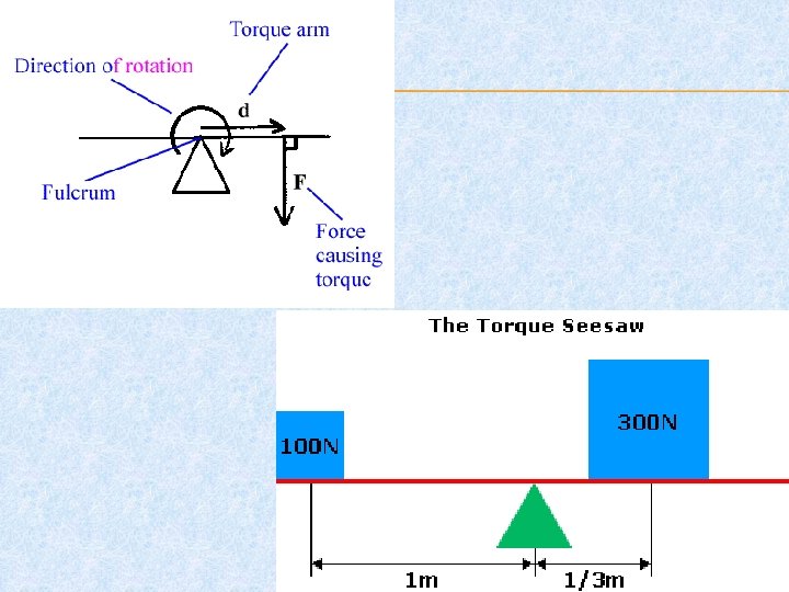 Formula : τ= Force X radius Where radius is the length of the lever arm τ =Fr aka W= Fd Units are N • m aka “Newton meter”
