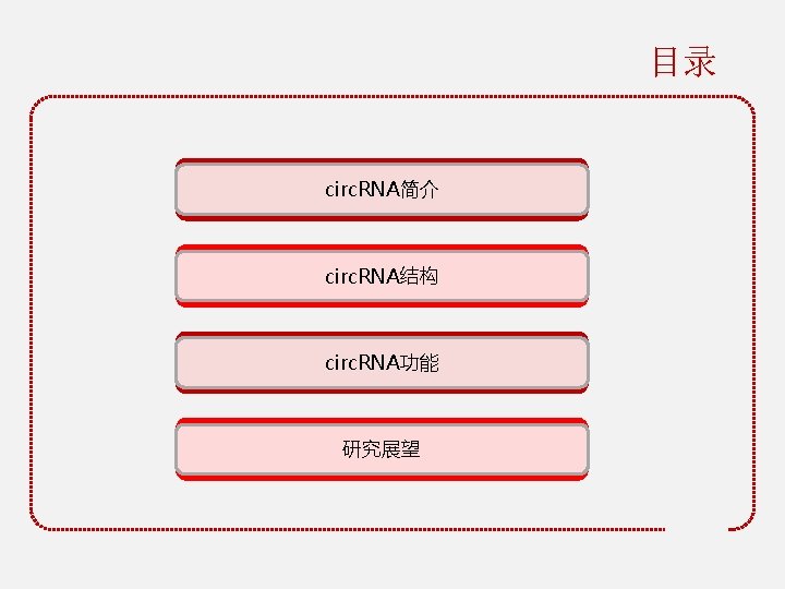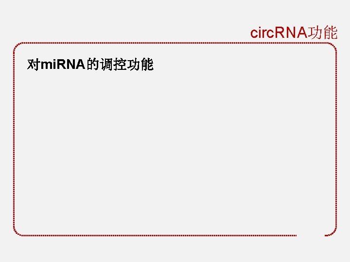 circ. RNA功能 最新Nature上两项研究都将焦点放在了由大约 1500个核苷酸构成的一个环状大 RNA上,存在于哺乳动物的脑细胞中。这些环状RNA可以阻断mi. R-7的调节作用。 类似的研究也有关小鼠性别决定基因等的研究。 ☆mi. R-7 is a key regulator of various cancer pathways ☆implication of mi. R-7 in Parkinson’s disease by direct targeting of α-synuclein protein expression ☆ci. RS-7 probably serves as a crucial factor significantly engaged in the functioning of neurons as well as a responsible candidate in neurological disorders and brain tumour development. mi. RNA-7 Attenuation in Schwannoma Tumors Stimulates Growth by Upregulating Three Oncogenic Signaling Pathways December 13, 2010 Cancer Reach