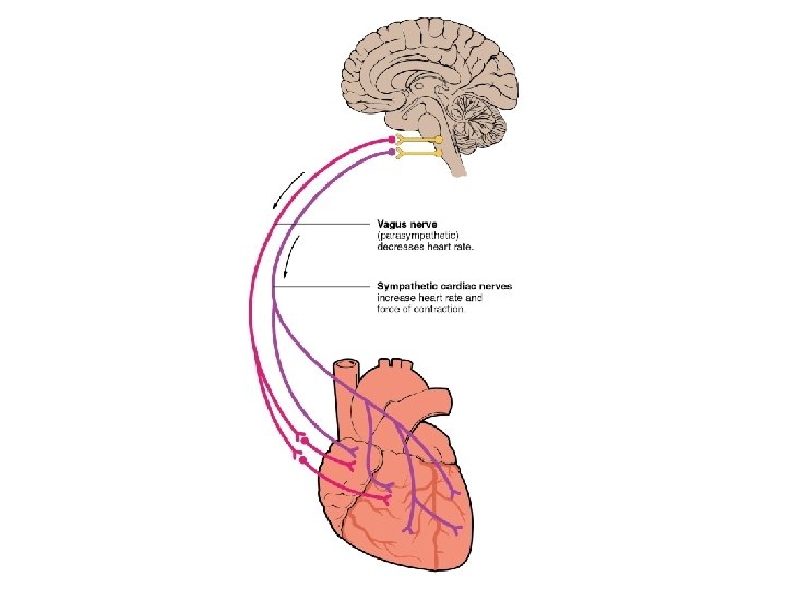 CONTROL OF THE HEART RATE • The heart rate (speed) at which the heart beats is controlled by two nerves. Cardioaccelerator nerve • ___________ in the Medulla Oblongata: Nerve in the brain that causes the heart to speed up when needed. Vagus nerve • ______: Nerve in the brain that causes the heart to slow down when needed