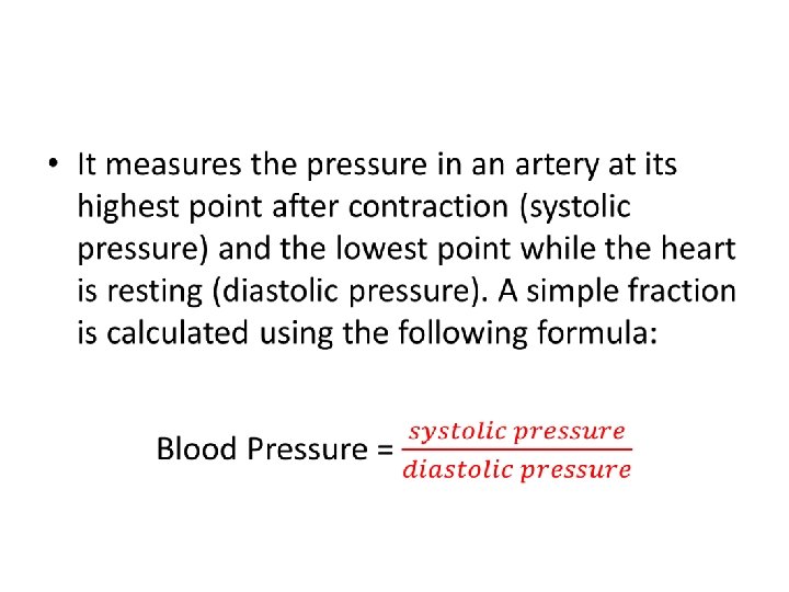 BLOOD PRESSURE • Blood Pressure: A measure of the pressure blood exerts on the walls of blood vessels.