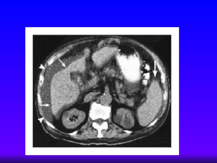 Complicaciones ¨ El dolor en el punto de punción o referido al hombro, ocurre en algo más de un tercio de los pacientes. Las complicaciones mayores: 1. - Hemoperitoneo. 2. - Hematoma intrahepático y hemobilia, son afortunadamente infrecuentes. 3. -Síncope vasovagal. 4. -Infección. 5. -Neumotórax. 6. -Mortalidad 1/10, 000