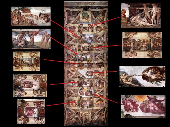 Le plafond de la Chapelle Sixtine par Michel-Ange « La Genèse » Michel-Ange fut appelé par le pape Jule II della Rovere en 1508 pour repeindre le plafond de la Chapelle Sixtine, auquel il travailla de 1508 à 1512. Contrairement à ce qui se dit souvent, Michel-Ange ne travaillait pas couché mais debout. Il le décrivit dans un sonnet assez humoristique, accompagné d'un croquis ci-contre. « À travailler tordu j’ai attrapé un goitre… Et j’ai le ventre, à force, collé au menton. Ma barbe pointe vers le ciel, je sens ma nuque Sur mon dos, j’ai une poitrine de harpie, Et la peinture qui dégouline sans cesse Sur mon visage en fait un riche pavement. Mes lombes sont allées se fourrer dans ma panse, Faisant par contrepoids de mon cul une croupe Chevaline et je déambule à l’aveuglette »