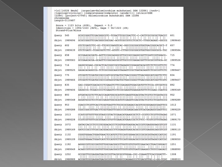 Methods Are the genes that are ‘missing’ from our genome actually present? › NCBI to obtain sequences for missing enzymes › BLASTx of sequence against proteome of mukohataei › Sort results based on e value › TBLASTx sequences of top hits to find any appropriate matches › BLASTn to search for missing proteins