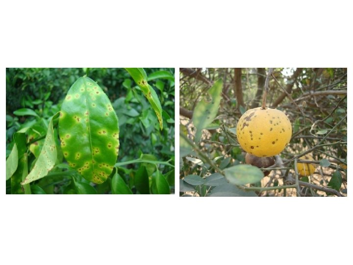 Citrus Canker on leaves Citrus Canker on fruit