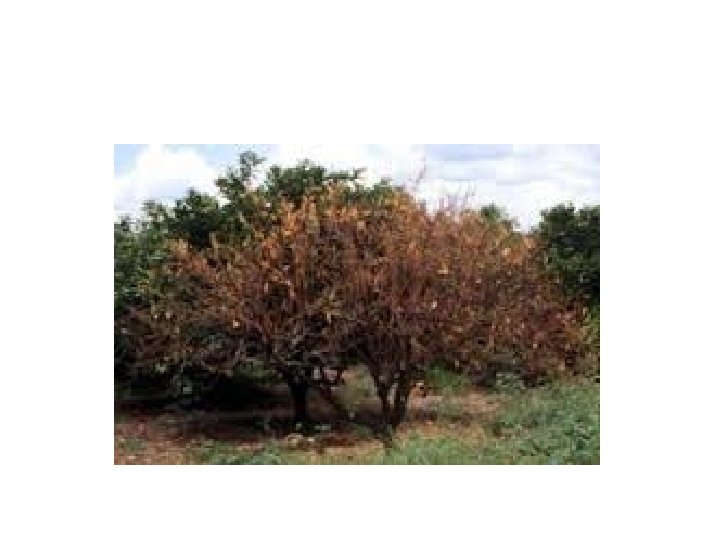 Citrus Withertip 2 - Citrus wither tip (Colletotricum gloeosporioids) Fungal disease a- Symptoms 1. All aerial part, leaves, braches and fruit are affected 2. Wilting from braches from top to bottom 3. Branches looks silvery grey leafless 4. Leaf fall is common 5. Pathogen kill the plant b- Corrective measure 1. Improve growing conditions of the orchard 2. Spraying with copper based fungicides