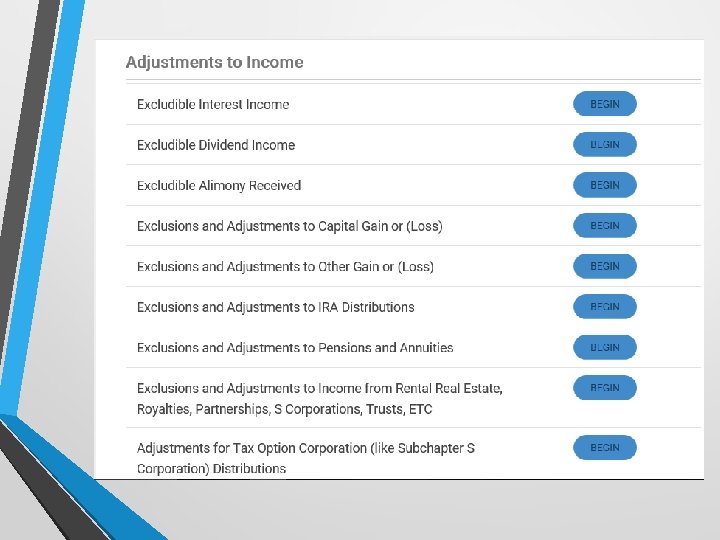 Filing Status and Exemption • Filing status options are the same as the state • Exemptions and filing status carry over