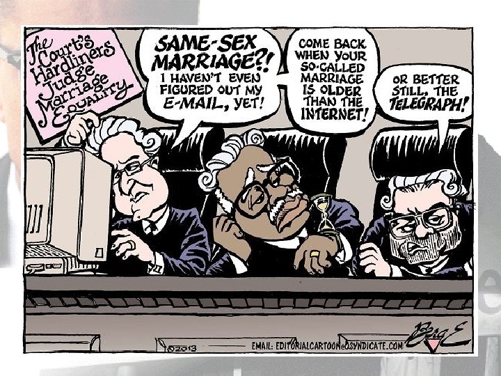 Important Court Cases • Bowers v Hardvick 1985 • The divided Court found that there was no constitutional protection for gays to engage in certain sexual acts, and that states could outlaw. • Lawrence v Texas 2002 • The Supreme Court ruled that a Texas statute had no legitimate state interest to justify its intrusion into the personal and private life of the gay individual.