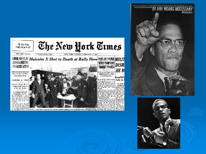 Malcolm declared that whites were responsible for blacks’ misery. Malcolm X holding an M 1 Carbine and pulling back the curtains to peer out of a window. This photograph is a popular image on Tshirts and often appears with the slogan "By any means necessary. " He also urged African Americans to fight back when attacked.