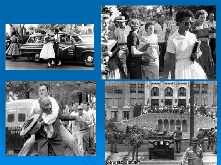 The school desegregation issue reached a crisis in 1957 in Little Rock, Arkansas. The state’s governor, Orval Faubus, refused to let 9 black students attend Little Rock’s Central High School.