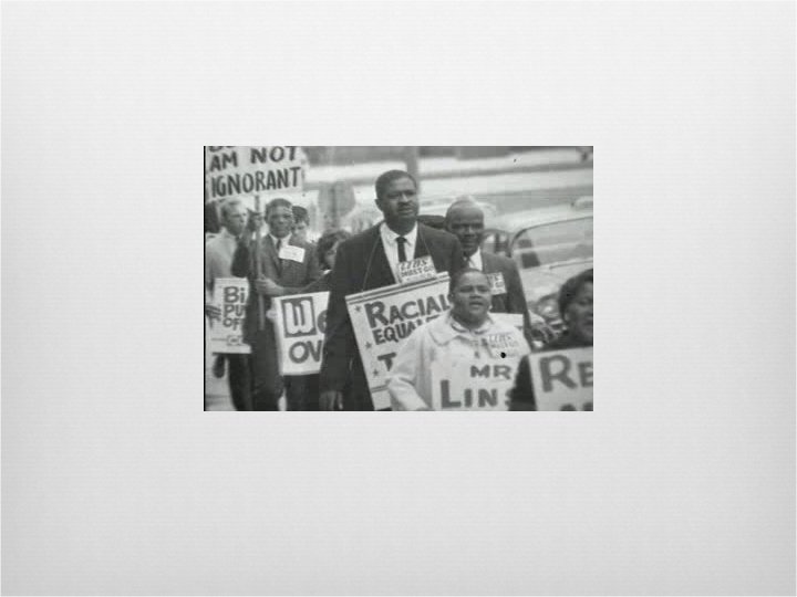 Heading into Birmingham April 1963, SCLC demonstrate to desegregate Birmingham King arrested, writes “Letter from Birmingham Jail” (later bailed out by Kennedy) TV news show police attacking child marchers— fire hoses, dogs, clubs Continued protests, economic boycott, bad press end segregation