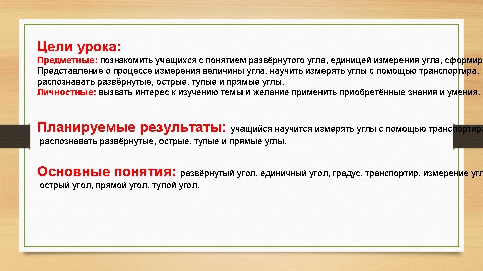 Острый, прямой, тупой, развернутый углы. Й УТ Ы ЗВ ЕР Н 60 70 РА 40 130 140 150 30 20 0 160 170 180 120 80 100 110 90 50 10 ПРЯМОЙ ТУПОЙ 110 100 120 80 70 130 60 140 50 ОСТРЫЙ 150 40 30 20 160 10 0 170 180