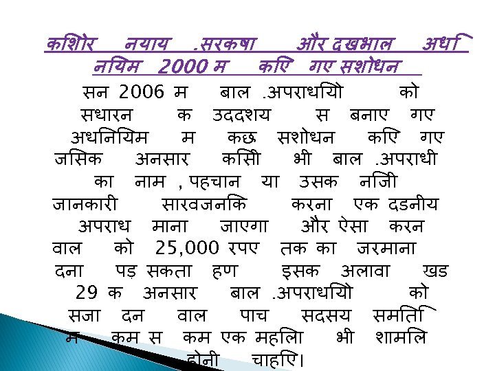 fdlh ckyd n~okjk fd; s x; s dkuwu fojks/kh v. Fkok lekt fojks/kh dk; Z dks cky vijk/k dgrs g. Sa. A Hkkjr esa cky U; k; vf/kfu; e 1986 ¼la”kksf/kr 2000½ ds vuqlkj 16 o’k. Z rd vk; q ds y. M+dksa , oa 18 o’k. Z rd dh vk; q dh y. M+fd; ksa ds vijk/k djus ij cky vijk/kh dh Js. kh esa lf. Eefyr fd; k x; k g. SA