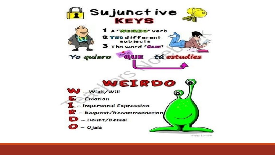 El subjuntivo expresa una actitud de la persona con respecto a alguien o algo. Por lo general, necesita de otro verbo que determina el significado de esa actitud. Se utiliza con frecuencia en oraciones subordinadas que empiezan con la palabra QUE, pero no todas las oraciones con QUE necesitan del subjuntivo. SUBJUNTIVO
