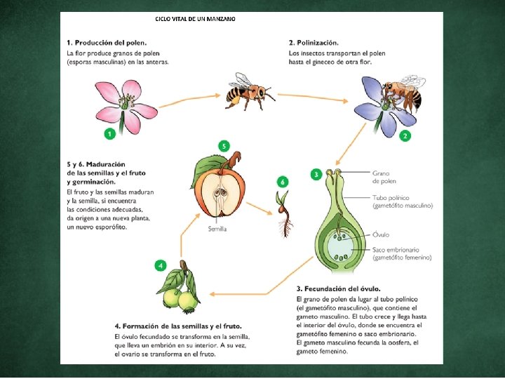 ANGIMNOSPERMAS Son plantas más evolucionadas, que forman FLORES VISTOSAS para atraer a los insectos, y también FRUTOS para albergar a las semillas. Los hay árboles, arbustos y hierbas. Las flores pueden ser MASCULINAS, FEMENINAS o HERMAFRODITAS y tener las dos estructuras para producir gametos masculinos (polen) y femeninos (óvulos). Dentro se forman las semillas y cuando eso ocurre, la flor se transforma en frutos para contenerlas.
