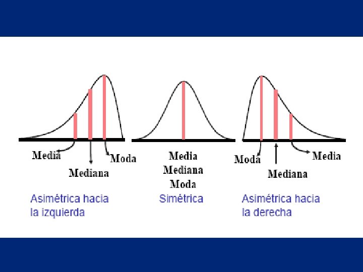 Comparación entre Medidas de Tendencia Central: • La media es siempre preferible, porque en ella se basan muchos otros estadísticos, y es un mejor estimador de su parámetro (µ) que la mediana y la moda Nivel de Medición Medidas Tendencia Central Nominal Mo Ordinal Mo - Md Intervalar - Razón Mo – Md - Media