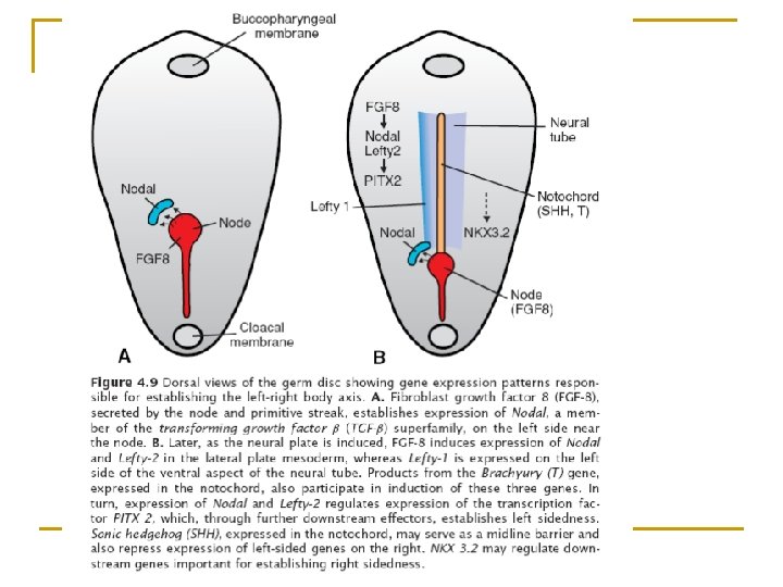 Establecimiento de los ejes corporales Área achurada: BMP-4 Se expresan: OTX 2 LIM 1 HESX 1 Se secreta: cerberus Brachyury