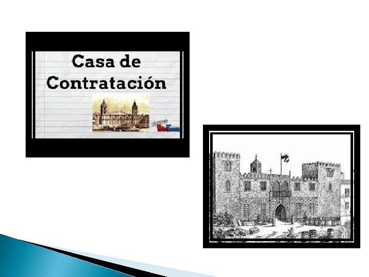 Real Consejo de Indias Funcionaba como máximo tribunal de justicia, asesoraba al rey en materia legislativa y nombraba a las autoridades coloniales. Además, realizaba los juicios de residencia, procesos judiciales en que las autoridades rendían cuentas tras finalizar sus servicios. Casas de Contratación Se encargaba del comercio y del transporte de mercancías entre España y América, además del cobro de impuestos. Controlaba la exclusividad de comercio entre España y las Indias, prohibiendo cualquier tipo de intercambio comercial entre las colonias y con otros Estados.