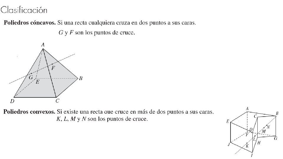 Un poliedro es regulares si todas sus caras son polígonos regulares congruentes. Un poliedro es convexo si dos puntos en su superficie pueden estar conectados por un segmento que se encuentra completamente dentro o en el poliedro. Si este segmento sale del poliedro, entonces el poliedro es no convexo o cóncavo.