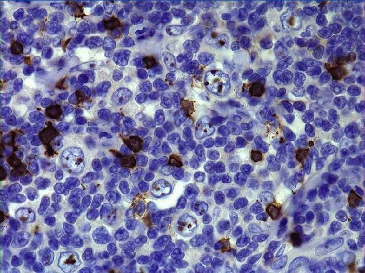 Linfoma de Hodgkin Ø Identificación de la célula diagnóstica de Reed- Sternberg en un apropiado ambiente o trasfondo celular Ø Variantes de las célula de Reed-Sternberg Ø Trasfondo celular es heterogéneo, vago o mutable. Ø Criterios inmunológicos que pueden ser de impacto en el pronóstico clínico.