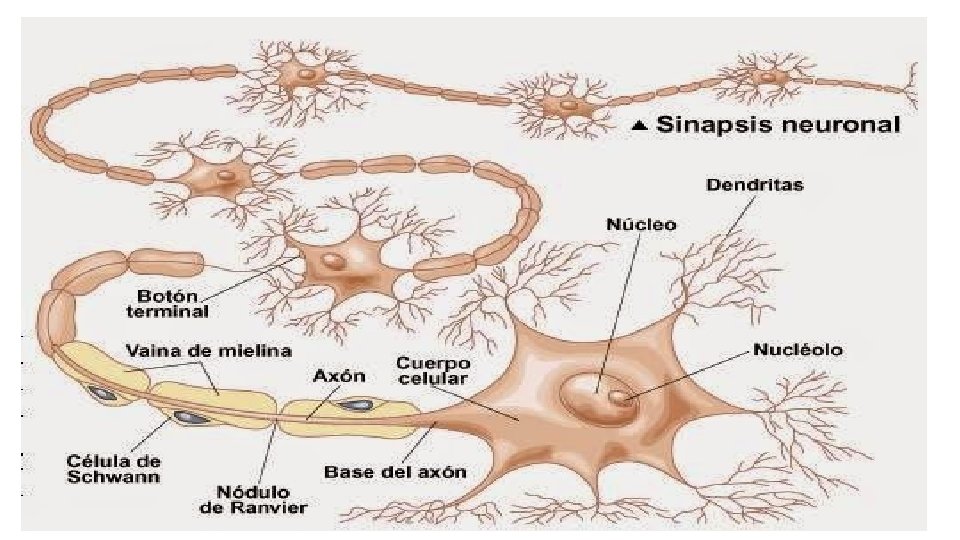CELULAS GLIALES • SON DE RELLENO, DAR SOPORTE ESTRUCTURAL S. N. PUEDEN DIVIDIRSE Y REGENERARSE EN CASO DE LESIONES SE REPRODUCEN Y LLENAN LOS ESPACIOS VACIOS TIPOS: ASTROCITOS (FORMA DE RED) MICROGLIAS(PROTEGEN AL S. N. C. DE ENFERMEDADES INFECCIOSAS POR FAGOCITOSIS) OLIGODENDROCITOS (PRODUCEN VAINA DE MIELINA)