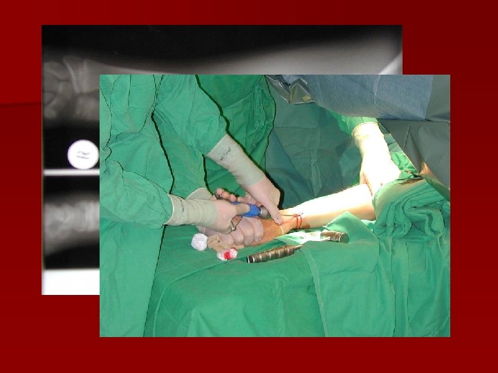 Tratamentul chirurgical – indicaţii: n Fracturi instabile n După 7 -10 zile de tratament ortopedic n După redeplasarea fragmentelor după tratament ortopedic n Fractura în cadrul unor polifracturi n Fractura deschisă n Fractura cu compresie vasculară