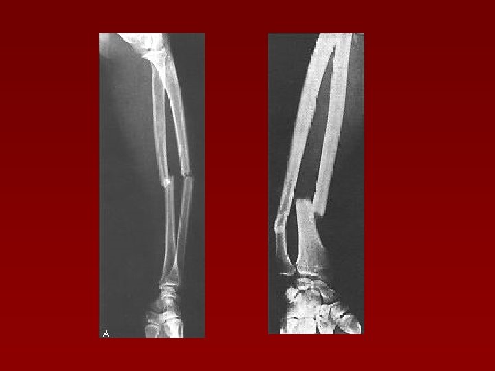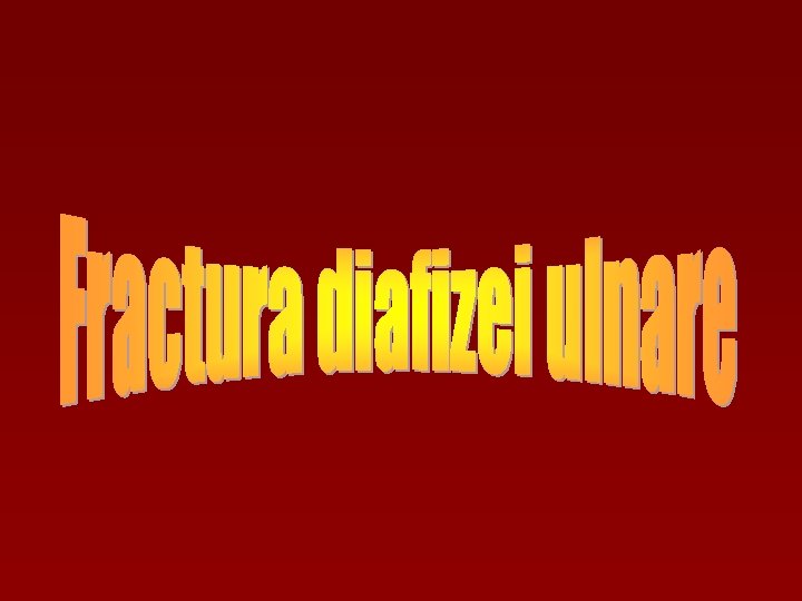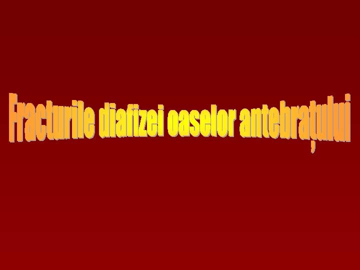 Clasificare n Fractura diafizară a ambelor oase (56%) n Fractura diafizei radiale (25%) (cu/fără dislocaţia articulaţiei radioulnare distale) n Fractura diafizei ulnare (19%) (cu/fără dislocaţia articulaţiei radioulnare proximale)