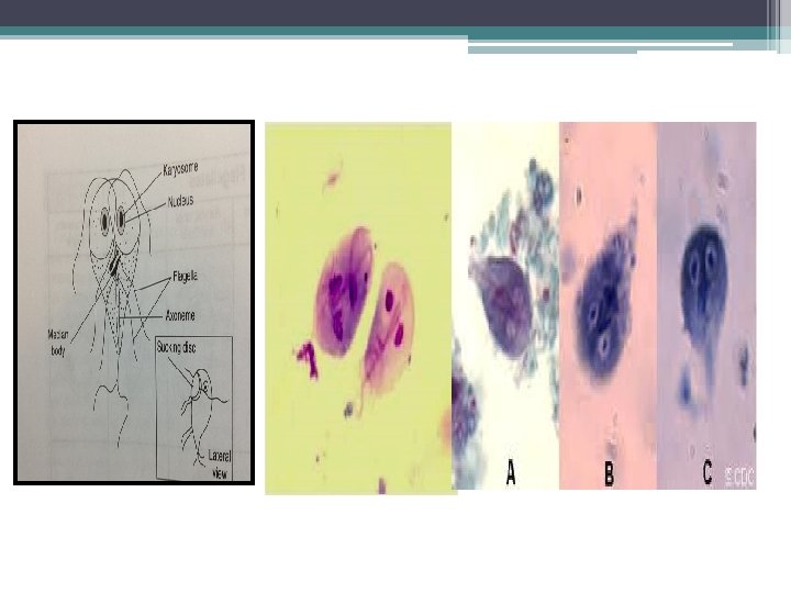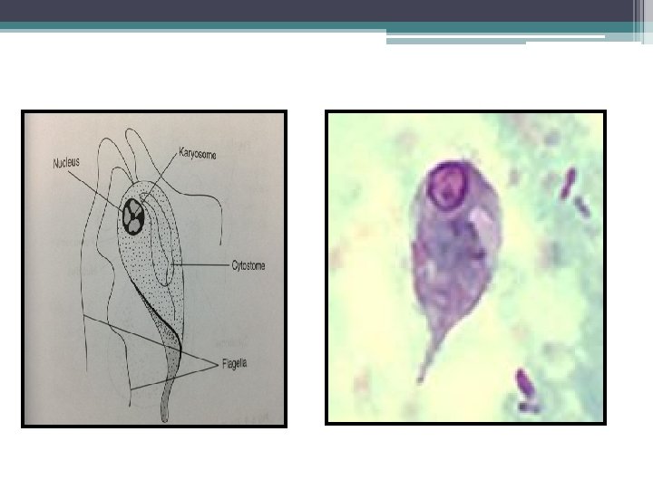 Trichomonas tenax Trichomonas. hominis Vagina and urethra mouth Large intestine Habitat 7 -23 μm 5 -12 μm 5 -15 μm Size (length) Usually 4 (3 -5) (4 -5) Usually 5 (3 -4) Number Anterior flagella Extend posteriorly beside the costa Extend on the free margin of undulating membrane Posterior flagella slit-like Narrow(small) Wide cytosome ½ of the body length 2/3 of the body length Full body length with free trailing flagellum Undulating membrane Coarse, aggregated around the undulating membrane & costa Well-developed Fine & scattered Cytoplasmic metachromatic granules Faintly stained lacking Para basal body Pathogenic (Trichomoniais) commensal ---- pathogenisity Trichomonas vaginalis