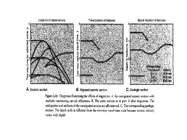 Unmigrated Seismic Reflection Profile Migrated Seismic Reflection Profile Still not directly an image of the subsurface.