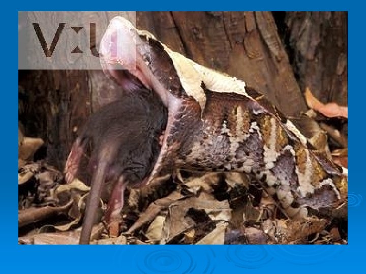 Reptilia Ø Snakes l l l Glottis is far forward to allow for breathing Vipers have hollow fangs that are hinged on the maxillary Coral, sea, and cobra snakes rigid fangs Some cobras can “spit” Venom glands are modified salivary glands