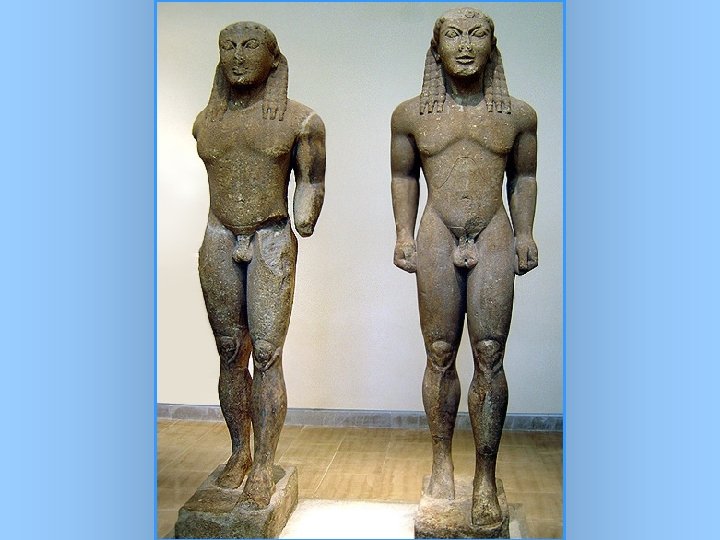 The Riace bronzes / Warriors are the earliest examples of idealized art. These ancient Greek warriors were discovered in 1972 by Stefano Mariottini while he was diving just off the coast of Riace Marina Italy. Not all the parts were found. They are missing spears, helmets, and shields. These are the earliest known idealized art. There is a lot we don’t know about them; when they were originally made? Are they the first casts, or were others casted? Are they copied from the originals? Who was the artist? Were there two artists? Candidates are Polykleitos, Myron, or Alkamenes. What method do you think was used: manipulation, subtraction, or lost wax? What pose or stance are they in? The contrapposto stance - Italian for counterpose. Riace Bronze