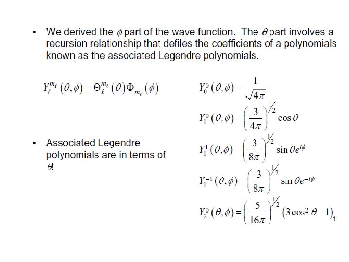 l = 1, m=± 1 Complex Value? ? If Ф 1 and Ф 2 are degenerateeigenfunctions, their linear combinations are also an eigenfunction with the same eigenvalue.