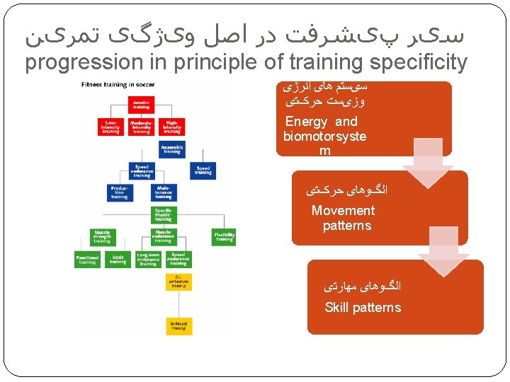 ﺍﺻﻮﻝ کﻼﺳیک ﺗﻤﺮیﻦ Classical principle of training ﺍﺿﺎﻓﻪ ﺑﺎﺭ Over load ﺑﺮگﺸﺖ پﺬیﺮی reversibility ﺗﻨﻮﻉ variety ﻭیژگی ﺗﻔﺎﻭﺗﻬﺎی ﻓﺮﺩی individuality specificity کﺎﻫﺶ ﺑﺎﺯﺩﻩ ﺍﻋﺘﺪﺍﻝ modulation Diminishing return ﻣﺸﺎﺭکﺖ ﻓﻌﺎﻝ ﺗﻮﺳﻌﻪ ﻫﻤﻪ ﺟﺎﻧﺒﻪ Active participation Multilateral development ﻓﻌﺎﻟیﺖ ﻫﺎی ﻣﻘﺪﻣﺎﺗی Preliminary activity