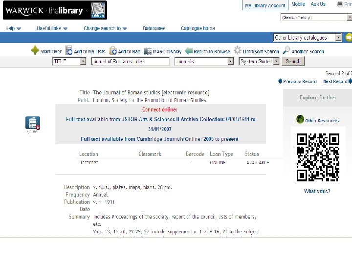 No Link to Full-Text? • Check the Library Catalogue for a paper or electronic copy – search for the journal title • Check the A-Z list of titles on the Electronic Journals webpage for an electronic copy. • Not in the Library? – Ask for the article through Article. Reach or Document Supply – Visit another local library.