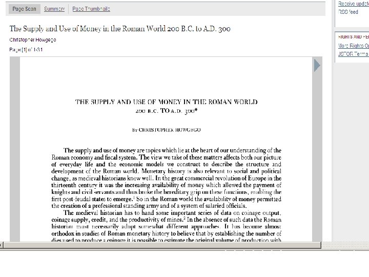 Finding Journal Articles • Howgego, C. (1992) ‘The supply and use of money in the Roman world 200 B. C. to A. D. 300’, Journal of Roman Studies 82: 1 -31