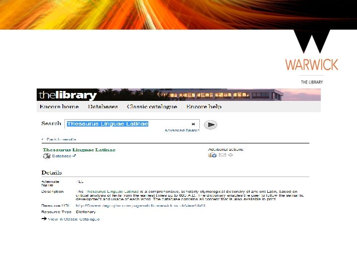Classics Third Year Students Dissertation Resources University of Warwick Library October 2016 Helen Ireland, Academic Support Librarian h. ireland@warwick. ac. uk