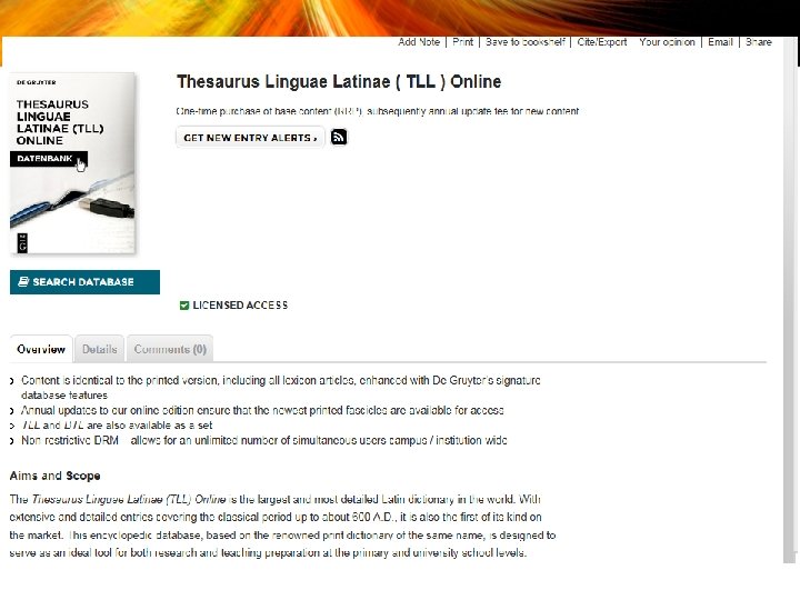 E-books • • • Brill’s New Pauly Cambridge Books Online Cambridge Collections Online Cambridge Histories Online Loeb Digital Library Oxford Scholarship Online Taylor and Francis e-book collection Translated texts for historians Wiley-Blackwell Companions to the Ancient World